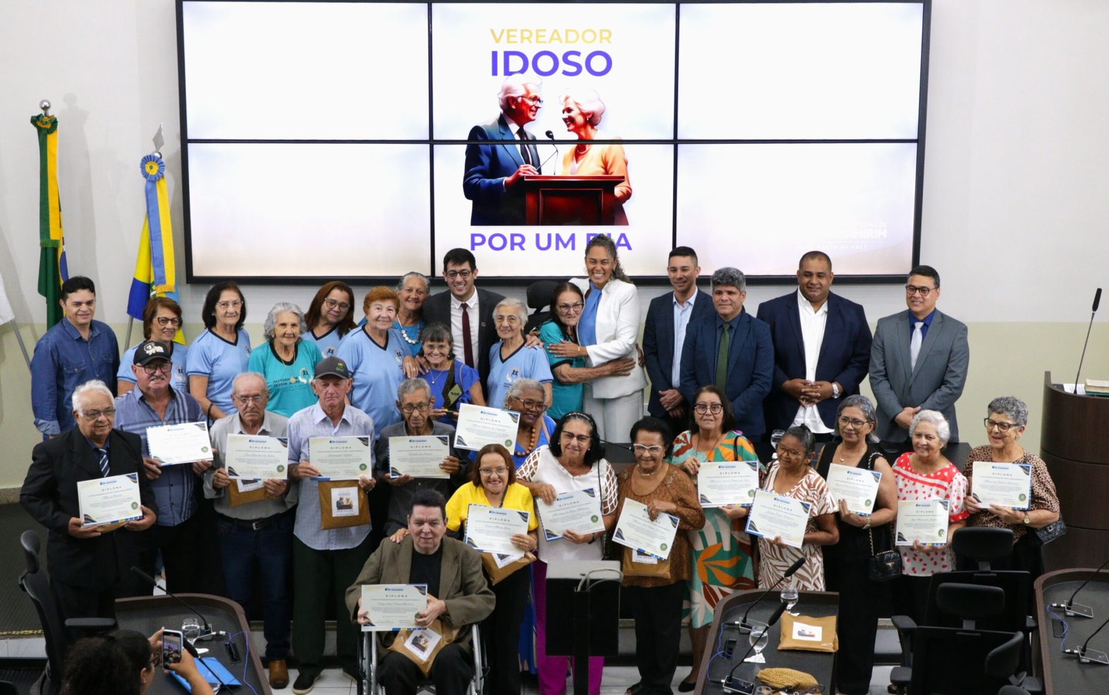 Na manhã desta sexta-feira (26), as bancadas do Plenário Dr. Mário Medeiros, da Câmara de Parnamirim, foram ocupadas por idosos, durante a sessão solene “Vereador Idoso Por Um Dia”. A solenidade, proposta pelo vereador Thiago Fernandes, é realizada pela quinta vez e presta uma homenagem aos anciãos do município pelo papel que esses representam na sociedade. Ao todo, 18 idosos assumiram os lugares dos parlamentares da Casa.