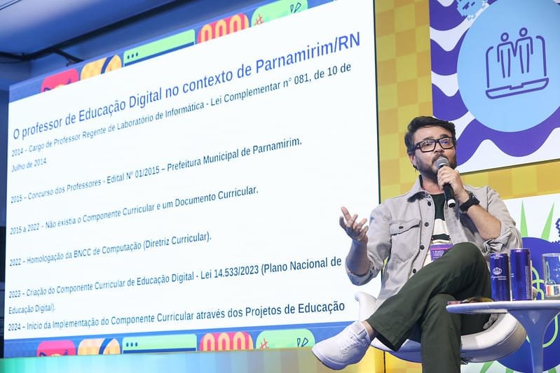 Durante o debate, que também contou com representantes do Ministério da Educação (MEC) e de outras entidades, Xavier destacou a iniciativa que rendeu reconhecimento ao município: a adaptação do conteúdo da disciplina de Cidadania Digital para estudantes do ensino fundamental, por meio do projeto “Patrulha Digital”, que abordou temas como o combate às fake news e o cyberbullying.