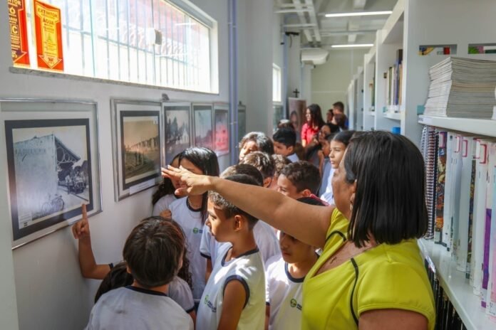 A Biblioteca Municipal Elienai Cartaxo, em Santos Reis, recebeu nesta quarta-feira (10) os alunos dos 2º e 3º anos da Escola Municipal Francisca Avelino para a última Visita Guiada de 2025. Ao longo do mês, as visitas ganharam uma atividade especial: além de conhecerem o funcionamento da biblioteca, seus serviços e o acervo de livros, os estudantes também visitaram a exposição de fotografias antigas de Parnamirim.